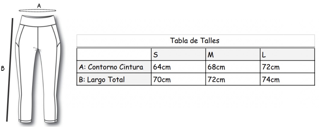 - Disponible en talles S, M y L.